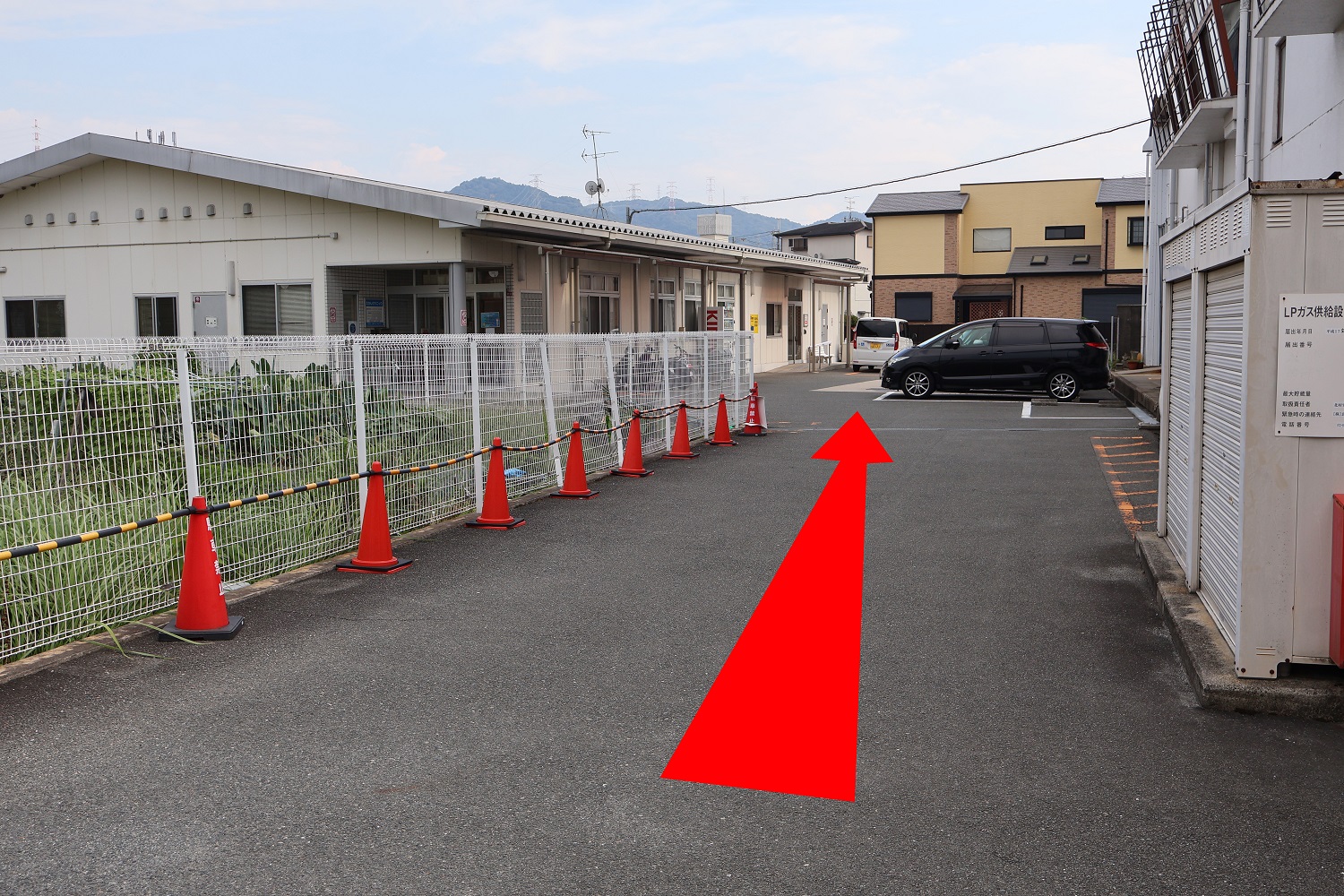 看板を目印に敷地内へお入りください。